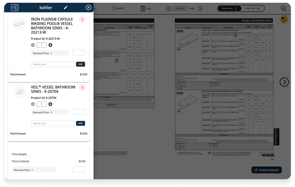 • Build projects and assemble quotes directly from the catalog